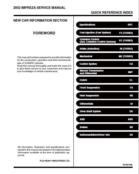 Read 2002 Wrx Service Manual Library Binding Open Library